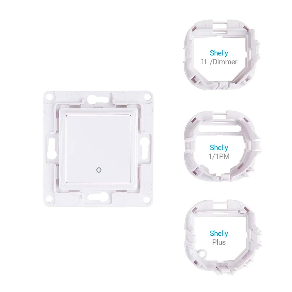 De Shelly Wall Switch wordt geleverd met 3 verschillende frames voor de verschillende module’s.