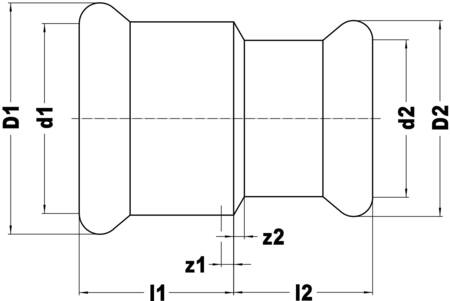 VSH XPress STAAL rechte koppeling, verloopkoppeling 28 x 22mm, staal (pers x pers)