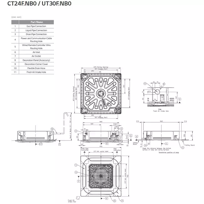 - Cassette ontwerp: De unit wordt discreet in het plafond geïntegreerd, wat zorgt voor een strak en ruimtebesparend design.