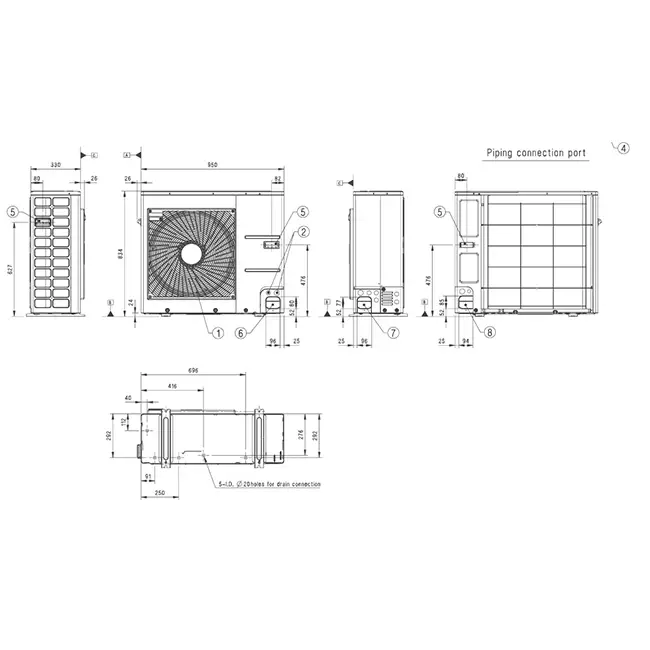 | Breedte buitenunit | 950 mm |