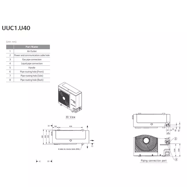 | Hoogte buitenunit | 834 mm |